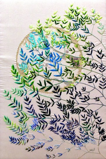 空にかざされた一枚の小さな葉っぱ。手のひらサイズほどの葉っぱの中には、繊細で
