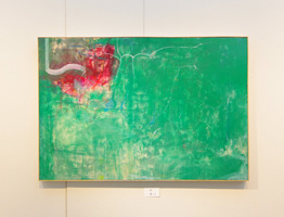 - 6月某日、『自由美術14人展』を開催中の一ノ澤文夫さんに会いに新宿のギャラリーを訪ねると、会場には文字通り、自由美術協会所属の作家14人によるバラエティに富んだ作品が展示され、その中に一ノ澤さんの新作『緑』があった。昨年の自由美術展で平和賞を受賞した、曖昧模糊としたニュアンスのある色形が印象的な『響』とは趣を変え、大胆なまでに形を排した色面の空間で魅せた作品だ。