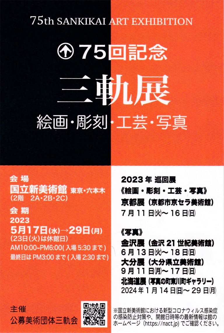 公募展として、毎年5月、国立新美術館にて『三軌展』を開催しているほか、巡回展を東北(仙台)、東海(名古屋)、関西(京都)の3地区で開催しています。