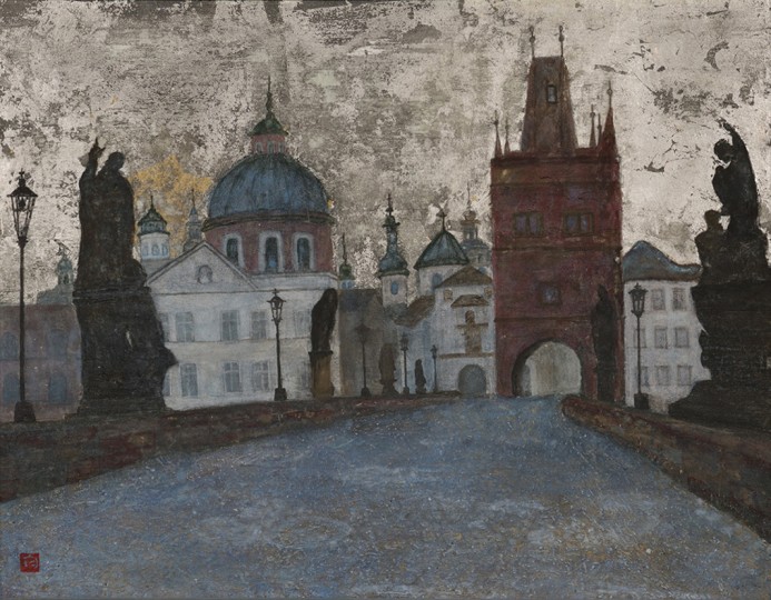 富田 匂:「静寂のプラハ」(日本画 F10)