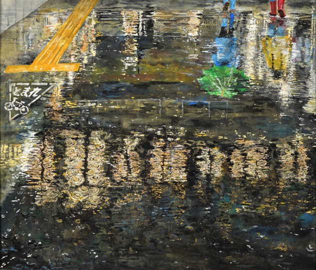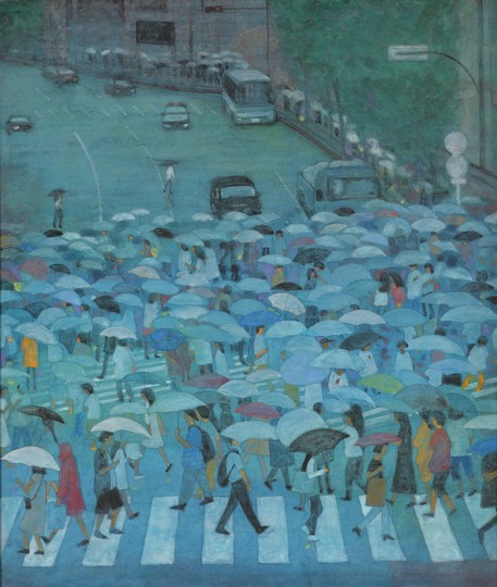 椎野圭子:「渋谷・雨」(日本画 F10)