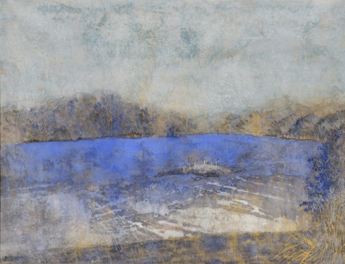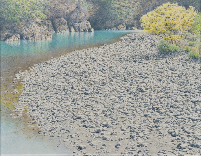 桃澤慶子:「春の雨と水辺」(日本画 P10)